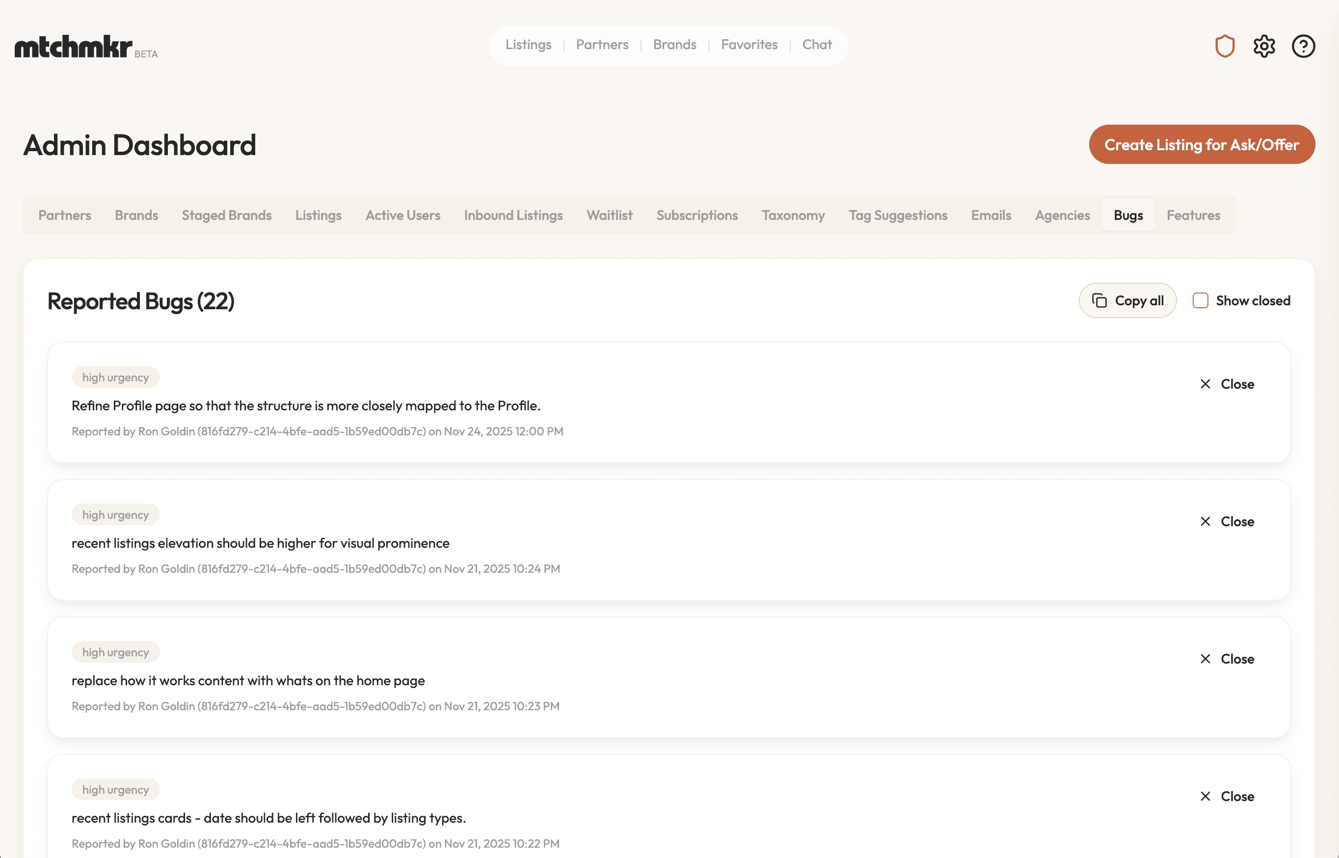 I built robust admin tooling to keep the business glancable for my non-technical co-founders. Bug triaging, waitlist management, analytics are all baked directly into the UI for users with admin roles.