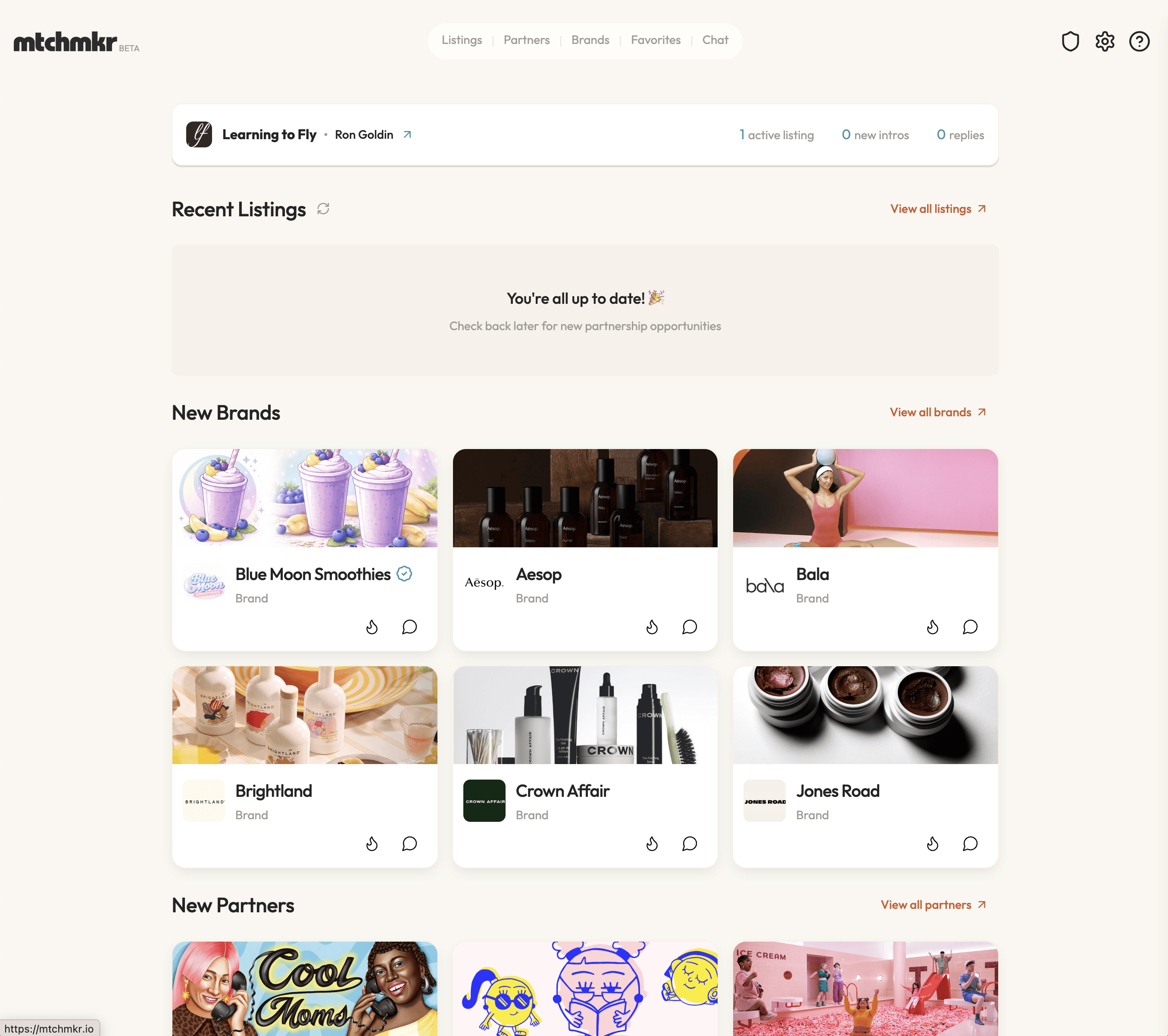 MTCHMKR is live and in Beta. We have active users engaging with the product. I handed the product off to my non-technical co-founders, who continue to evolve the product and I remain an advisor. I also brought on a fraction product leader to help the product continue to scale.
