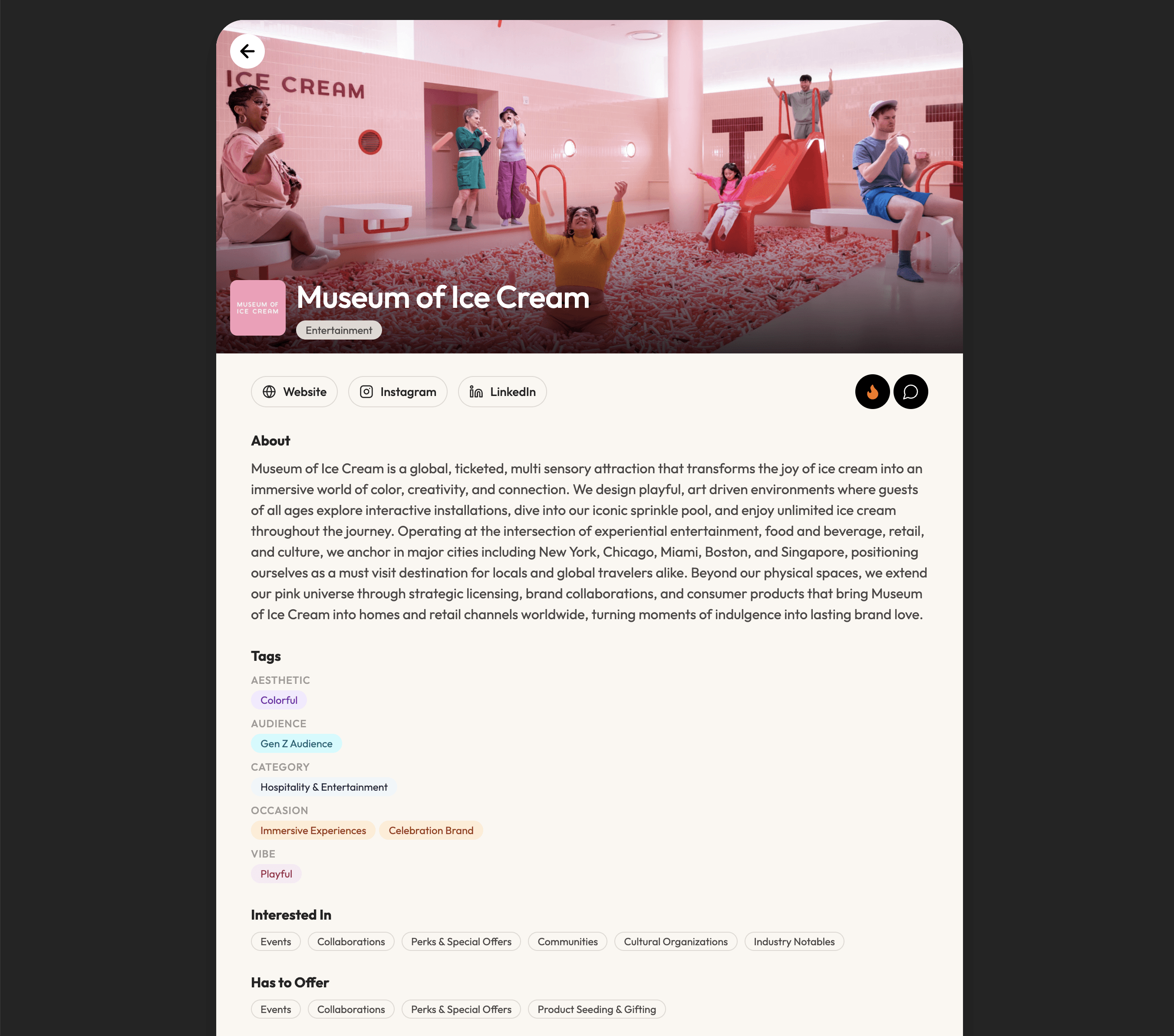 Our members fill out profiles that help others understand their asks, offers, and brand attirbutes to find a match. We also use AI to supplement what they provide for industry insights that make our search and matchmaking algorithms more powerful.